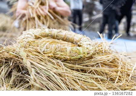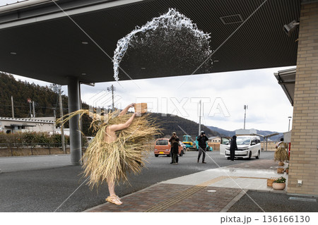 宮城の来訪神行事米川の水かぶり神様のわらを抜く観衆