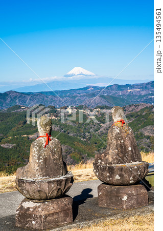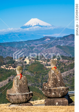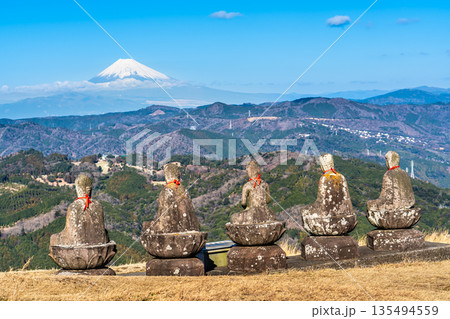 大室山登山リフト 山頂からの五智如来と富士山【静岡県伊東市】