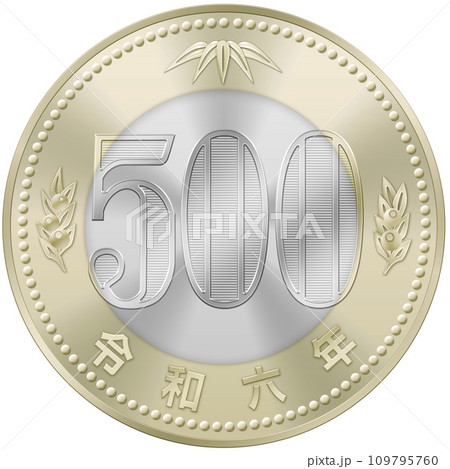 日本のお金のセット 新500円硬貨 100円 50円 10円 5円 1円 イラスト ベクター