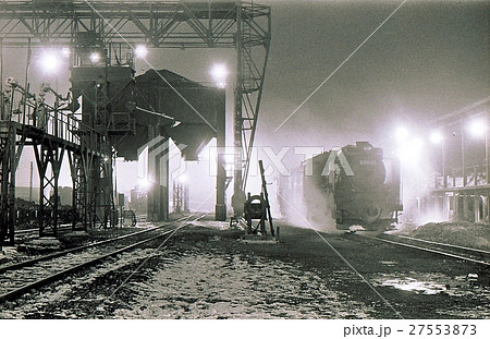 昭和45年 蒸気機関車D52の夜景 五稜郭機関区 函館本線 北海道 函館市