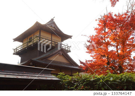紅葉に包まれる逆井城の二層櫓
