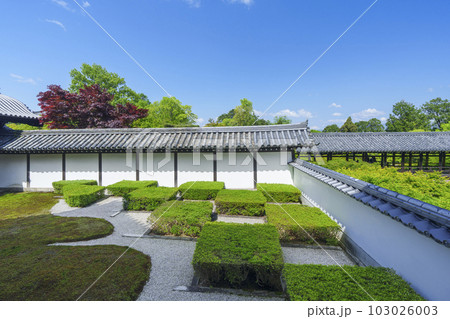 京都市東福寺のサツキ咲くモダンな方丈西庭