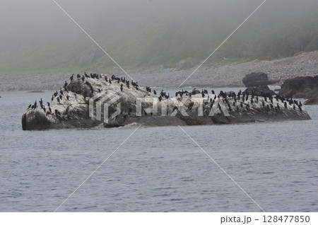 海鳥の群れ・岩礁(知床半島 西岸/北海道)