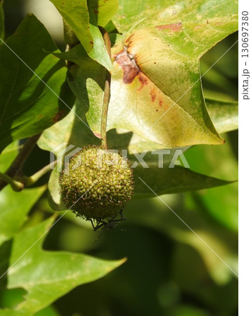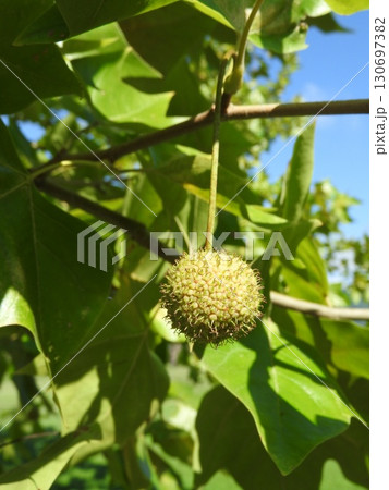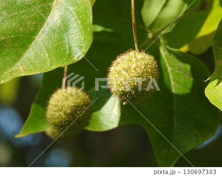 アメリカスズカケノキ(別名:プラタナス)の果実と葉