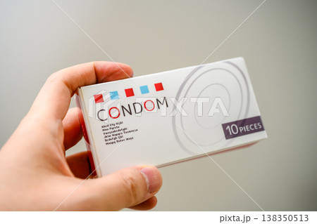 Red condoms and beautiful leg sexy woman reclines on the bed with red g-string between feet