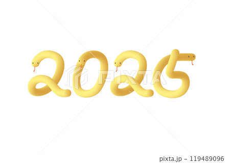 立体的でかわいい黄色の蛇が2025の形に並んでいるイラスト