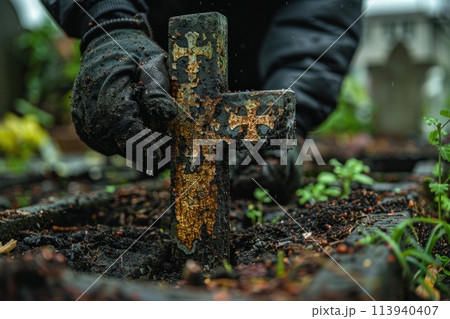 Sign of Eternal Remembrance: An old cross is placed in the cemetery as a sign of respect for the departed, reminding of eternity and devotional prayers