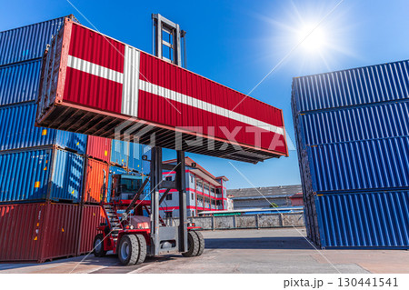 Products shipping cargo goods with Denmark flag for import export business from Denmark country