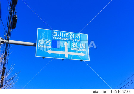 吉川市役所越谷松伏の青看板