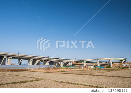城陽市の田園地帯を通る自動車専用道路 京奈和自動車道 京都府城陽市