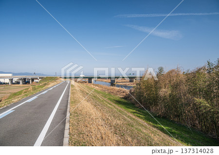木津川堤防上のサイクリングロード 京奈和自転車道 京都府京田辺市