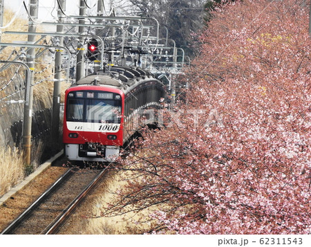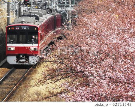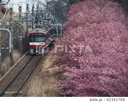 京急電車とカワヅザクラ Keikyu train & ‘Kawazu-zakura’