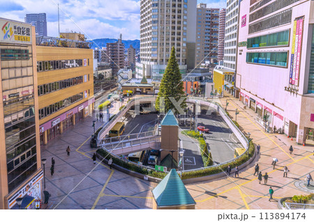 日本の相模原市都市景観 橋本駅前やバスロータリー、タワーマンション群などを望む=21日