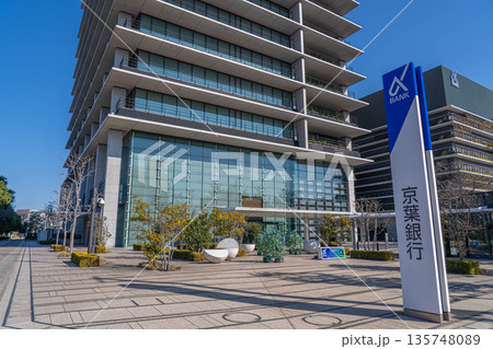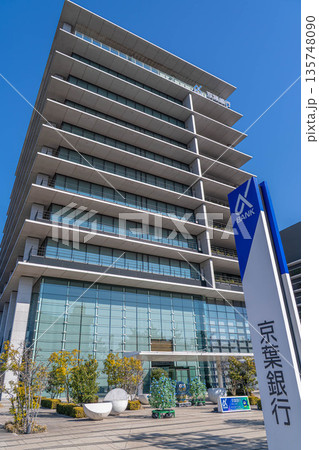 青空に映える京葉銀行千葉みなと本部ビルと看板【千葉県千葉市・千葉みなと】