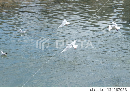 ゆりかもめがいる鴨川三条大橋付近の風景