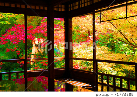京都市左京区の瑠璃光院と紅葉の風景、京都、秋、季節【11月】
