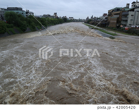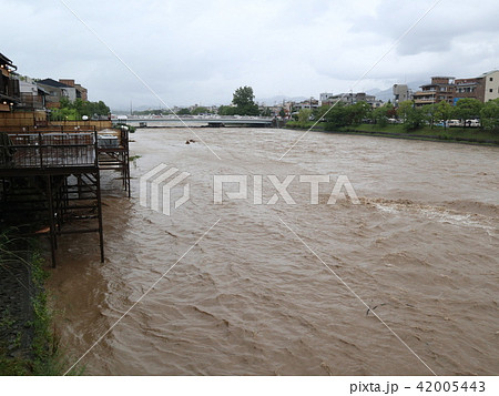 平成30年7月豪雨の際の鴨川、三条大橋から_2018年7月6日16時撮影