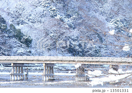1月京都 嵐山渡月橋の雪景色