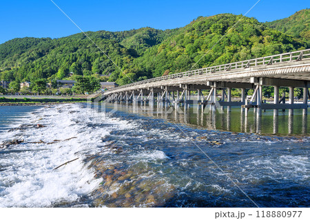 夏の京都嵐山 渡月橋と桂川の流れ