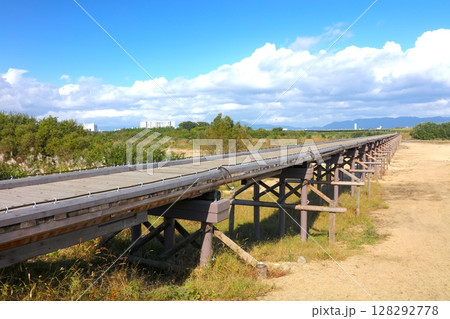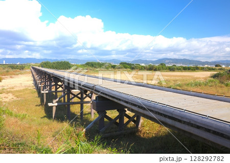 京都の木津川に架かる歴史的建築物、流れ橋「上津屋橋(こうづやばし)」/日本三名橋