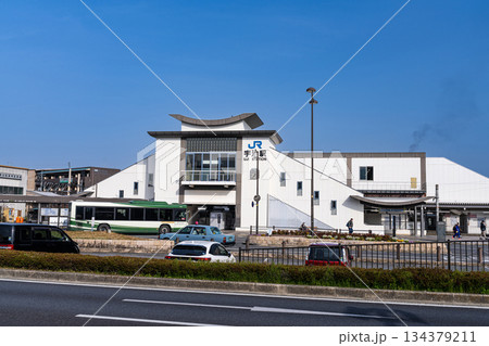 JR奈良線 宇治駅の晴れた春の朝の風景 京都府宇治市