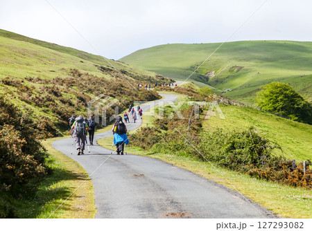 Pilgrims journeying along the scenic Camino de Santiago in the morning