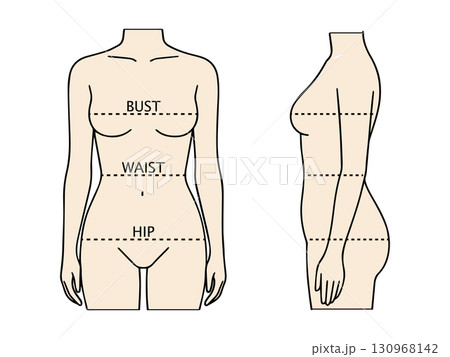 女性ボディサイズ計測ガイドイラスト(バスト・ウエスト・ヒップ)