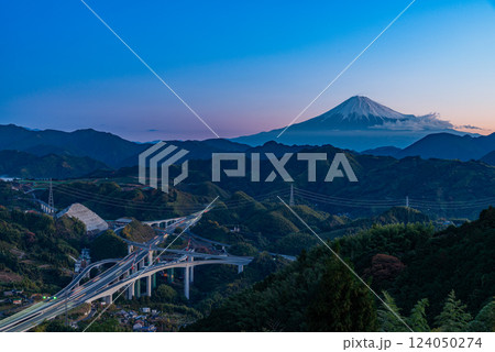 【静岡県】新東名高速道路新清水JCTと富士山 夜明け
