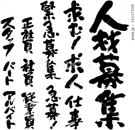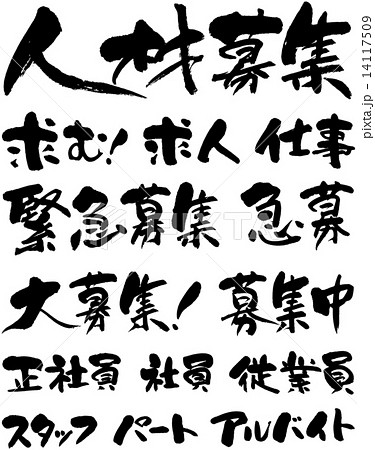 筆文字素材の手書きの【人材募集】墨で書いた横書きのベクターイラスト[ビジネス]