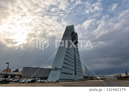 富山県富山市 快晴の富山市ガラス美術館・富山市立図書館本館