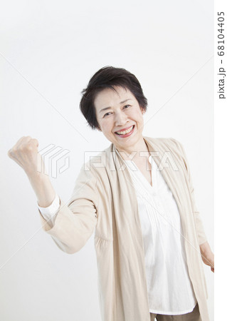 ガッツポーズをするシニア女性