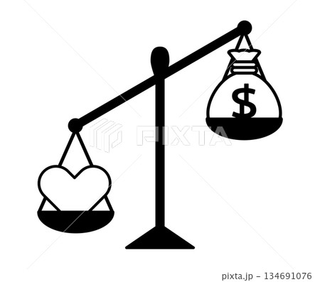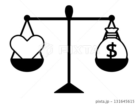 愛と富を比較・価値観や優先順位を表現・愛とお金の天秤アイコン