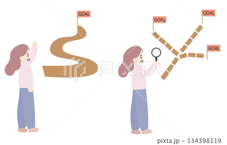 分岐点のイメージイラスト、人生の選択