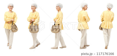 白髪マダムのシニア女性の全身人物切り抜き素材