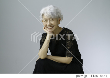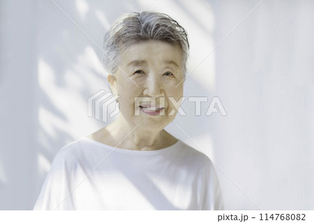 微笑む白髪のシニア女性のポートレート