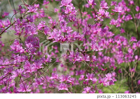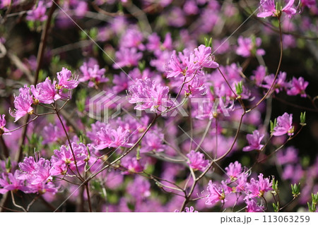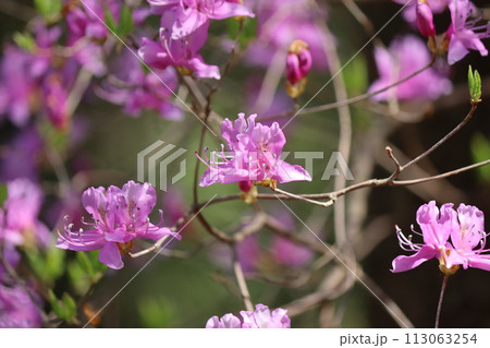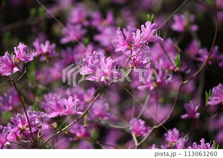 朝の光がミツバツツジの花を引き立てるー拾