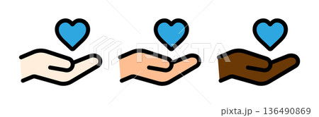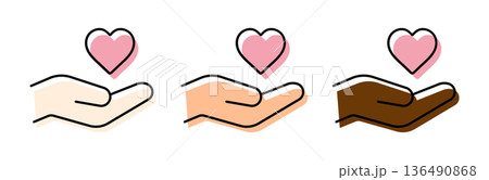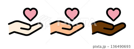 多様性・多国籍を表すハートと手のアイコン 版ズレ風