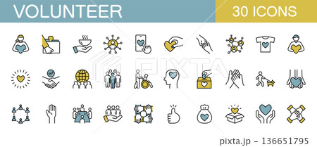 ボランティアに関するアイコンセット カラー