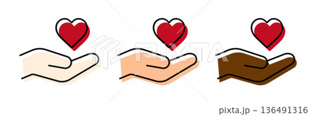多様性・思いやりを表すハートマークと手のアイコン 赤