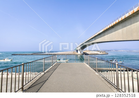 浜松市、浜名湖の今切口と頭上を通る浜名大橋
