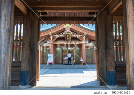 愛媛県今治市の吹揚神社の鳥居を拝殿側から見る