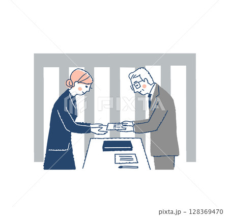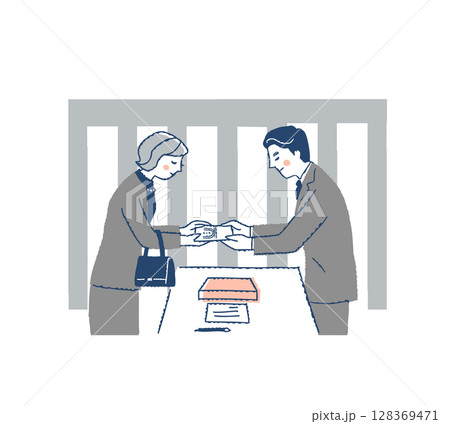 香典を手渡す喪服姿の男性と受け取る女性スタッフ