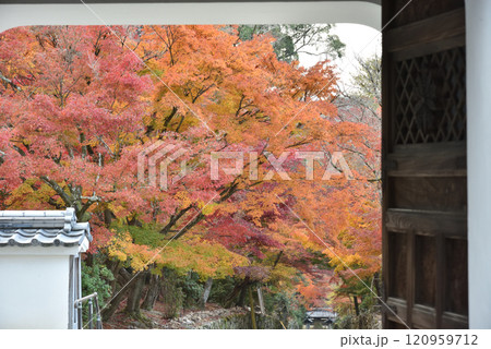 佛德山興聖寺 山門と秋のモミジ(京都府宇治市)