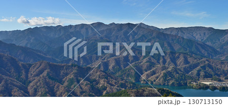丹沢の高取山山頂 展望台からのパノラマ写真 丹沢山地と宮ヶ瀬湖