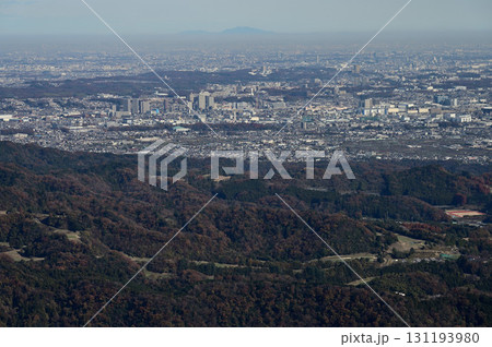 丹沢の仏果山山頂 展望台からの眺望 相模原市と遠くの筑波山