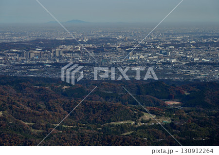 丹沢の高取山山頂 展望台からのパノラマ写真 関東平野