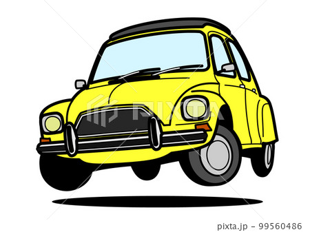 フレンチコンパクト 旧車 ジャンプ 黄色系 自動車イラスト
