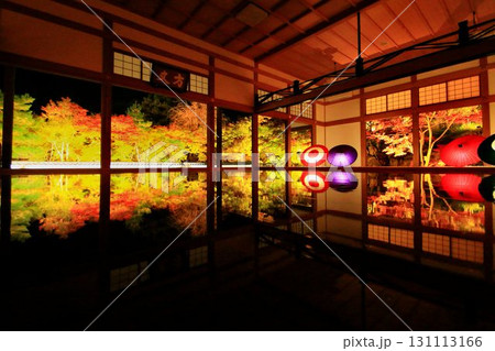 美しく鏡面に設えられた床… 秋夜の絶景・映り込む紅葉