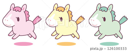 白馬のデフォルメキャラクターのイラストセット