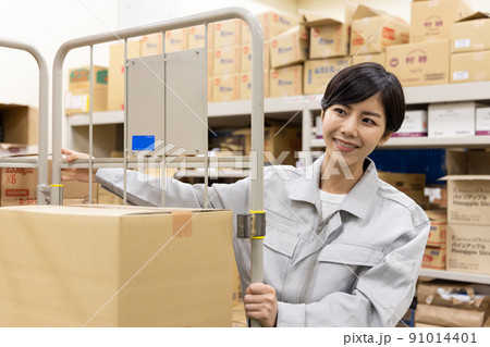 物流・運送業界 イメージ カートで荷物を運ぶ女性